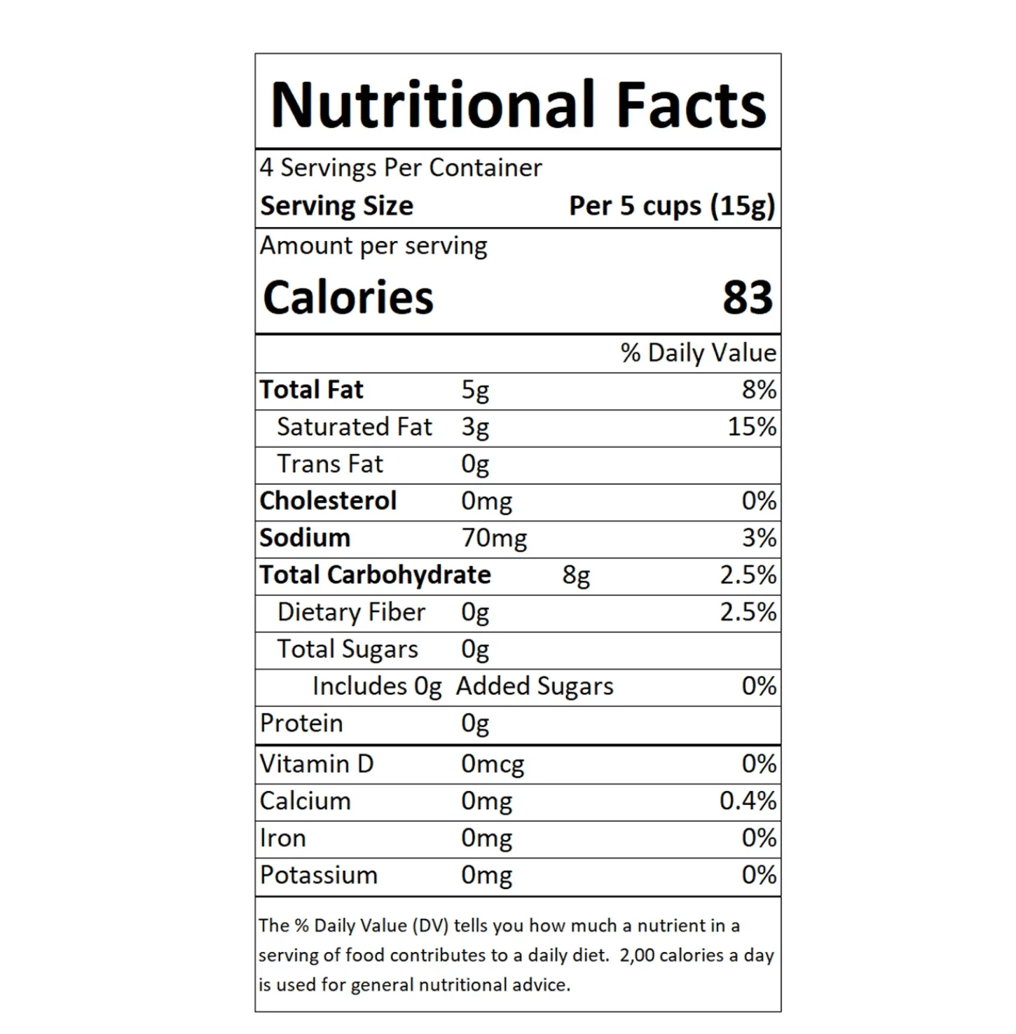 Wheat flour, vegetable shortening (palm oil, palm fat, coconut oil, rapeseed oil, mono and diglycerides), lupin flour, water, salt.