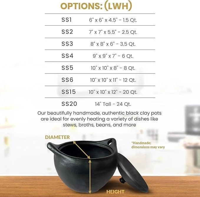 In a variety of sizes, our Chamba soup pot is the perfect solution for cooking and heating stews, broths, chicken dishes, beans, and even for making yogurt from starter. These covered soup pots are handmade from Colombian black clay and are a unique addition to your dinnerware, going directly from stove to table. These versatile soup pots are non-toxic and are great for the conscientious cook's collection.